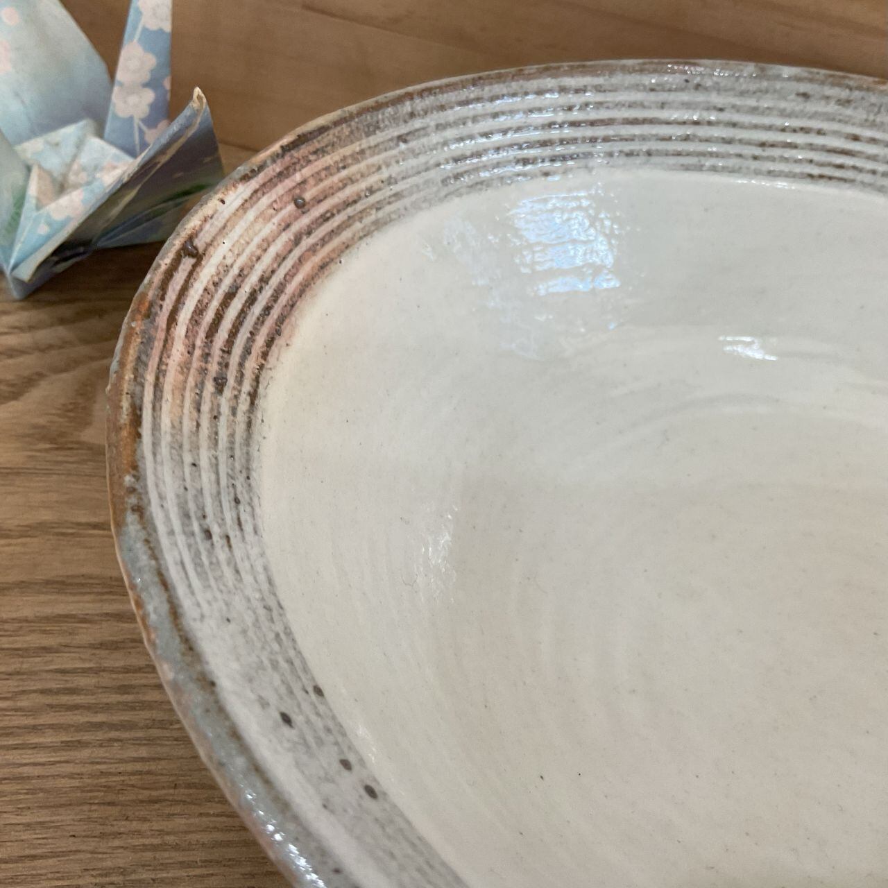 信楽焼 渕荒横彫 楕円深鉢 古谷製陶所