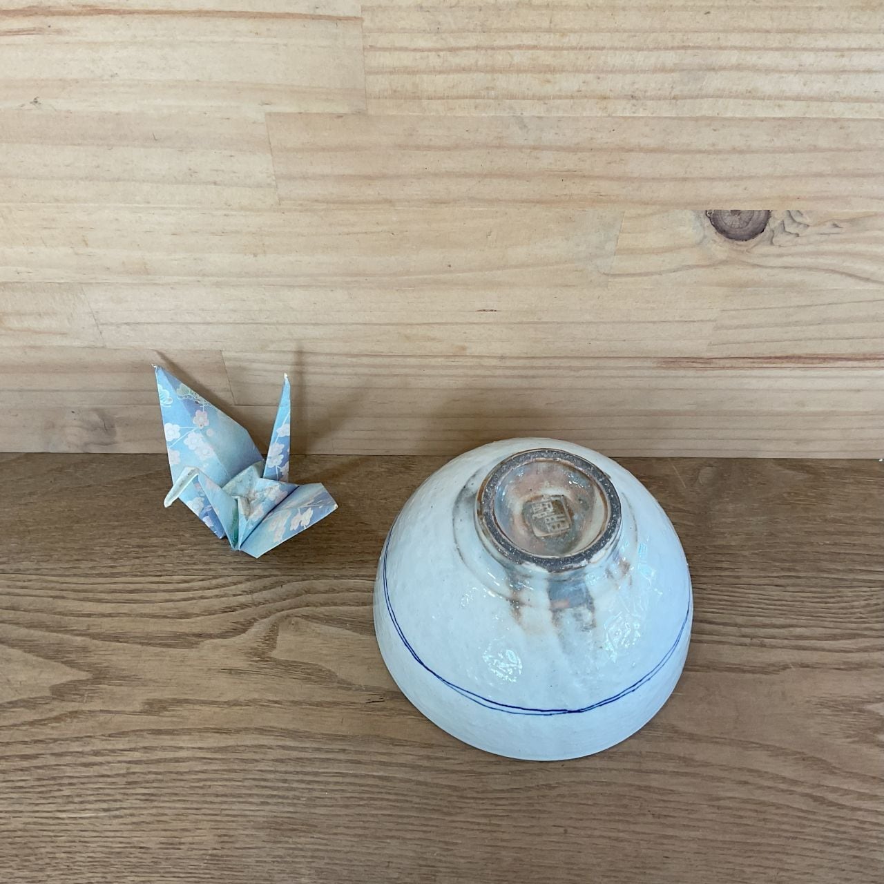 呉須というブルーの顔料を使い、フリーハンドで線を描いています。