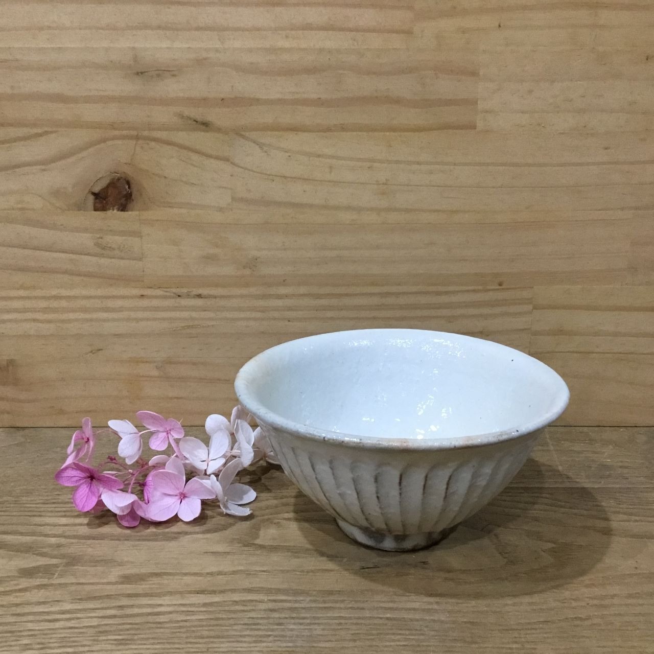 粉引のあたたかい白に、土の赤みがふんわり見え隠れします。