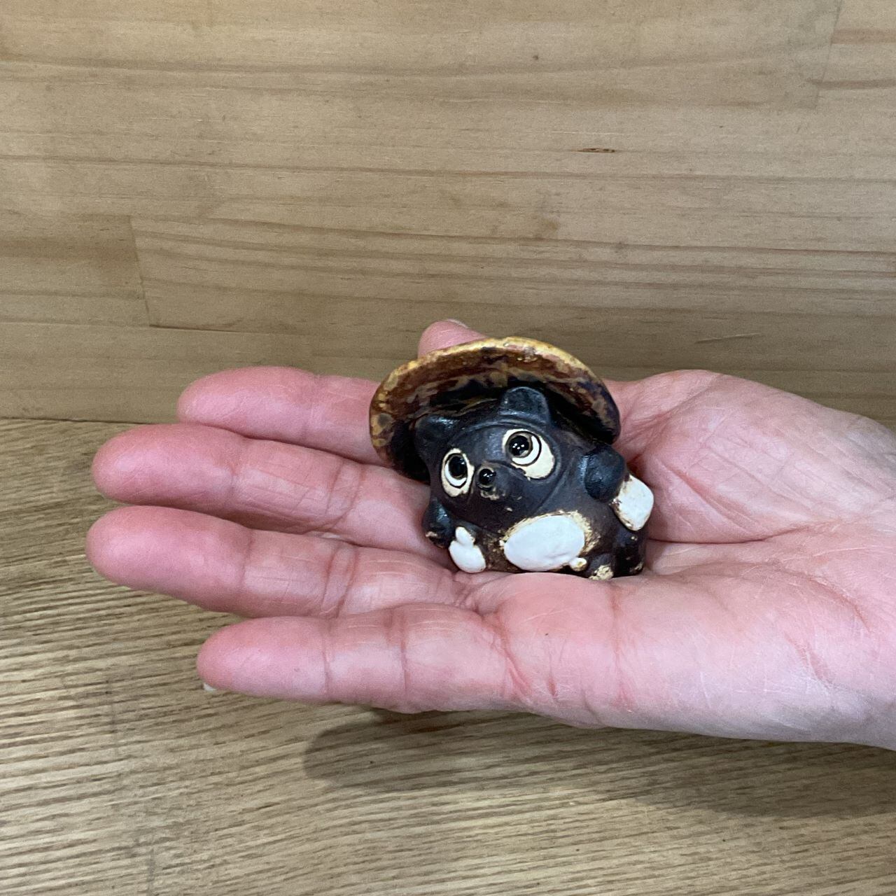 ひょうきんな顔、福々しいお腹、見ている人の心和ませる焼き物です。