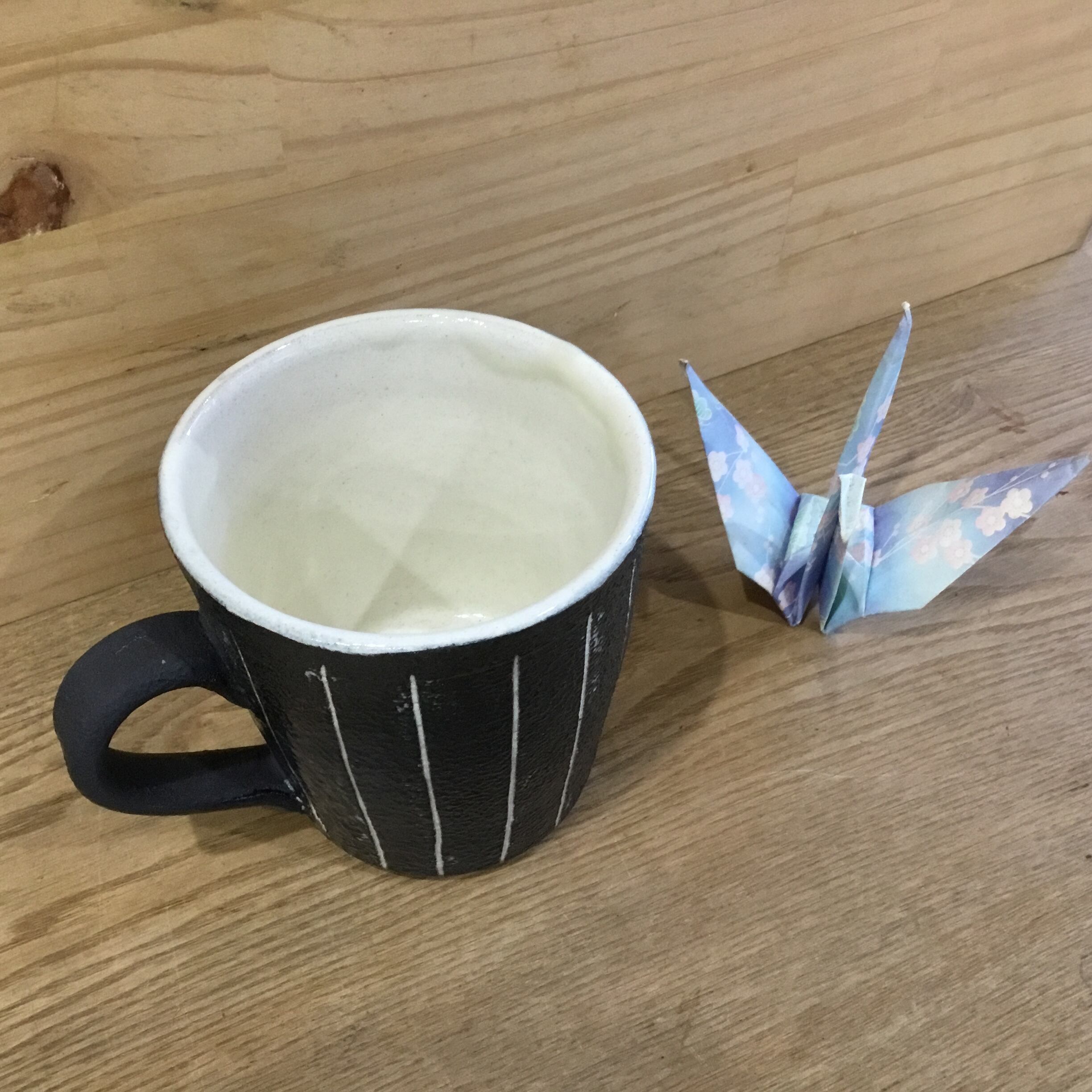 線のくぼみにしろ土を埋め込み素焼き後に、透明釉薬を掛け本焼きをします。