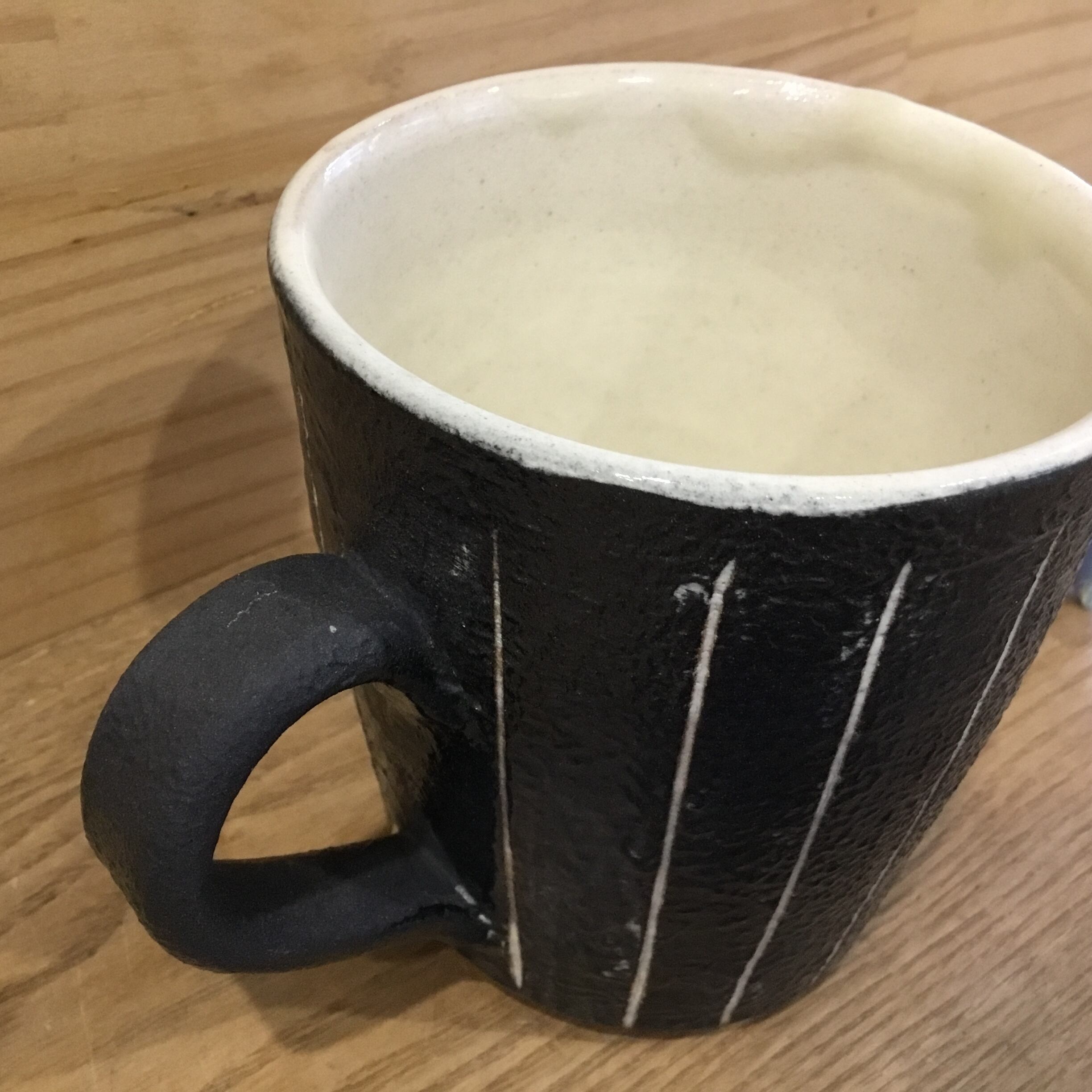 スポンジを使い黒化粧土を外側に施こし乾燥素焼きをします。